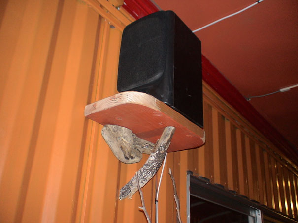 左側のスピーカー台はビーチバム住人のよういちさんにつくってもらいました。