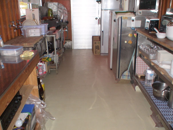 厨房の床にリノリウムを貼ったり、冷蔵庫に庫内温度が外から見える温度計をつけたり、その他諸々保健所の指導にしたがって手直しをしました。