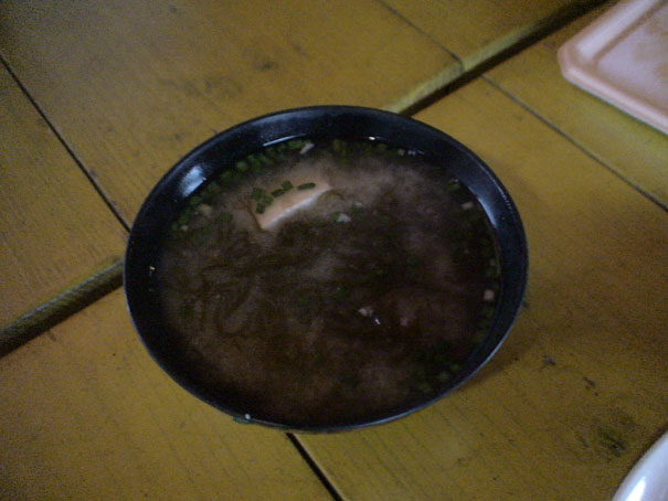 みそ汁は、カツオだしで生のモズクをさっと湯通しして、少量の味噌をとき刻んだ青ネギを加えただけのシンプルなもの。豆腐を加えてもうまい。