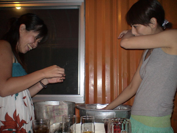 おかげさまで最近お店のほうもなんだかんだで忙しく、ある晩はオーバー40大集合70年代フォークの夕べinうた声barバービーチバムだったり、その翌日は、近くのバー「sababa」でのライブのためにウチの宿に泊まっていたNGOMAのみなさんとライブ帰りのお客さんたちで、朝4時過ぎまでの大盛況だったり、ビーチバム住人のトモちゃんのお誕生日会で盛りあがったりと、肝臓さんは休日知らず(シラフで夜のお仕事などできるはずもなく)、胃腸さんは夜中に悲鳴をあげるに至り、今日は今日とて、隣ではなにやらとってきたウニを焼いて食べようなどという宴が繰り広げられているのを尻目に、「まったくどいつもこいつも毎日酒ばっかり飲みやがって…」と、サンピン茶をすすりながら、にわかアンチ酒飲みを決め込んでいるわけであります。