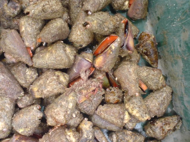 モズクに飽きると、ティラジャー(マガキガイ)というこのへんでは誰でも知っている貝を採ってきます。