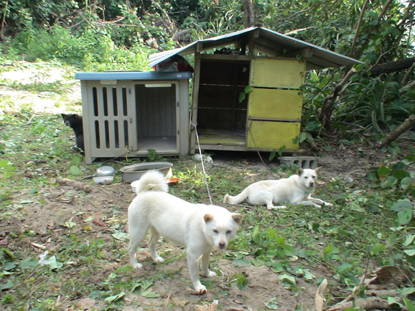 森の中にわんこたちのスペースをつくるため、かなり気合いをいれて木を切ったり草刈りもして、犬小屋を移動するという、わりと骨のおれる作業にかかる。