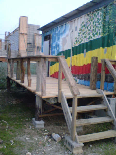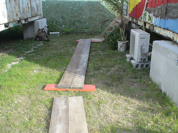 まずは個室コンテナ入り口付近に大雨が降ると水がたまってしまうので、ちょっとした歩道(?)を設置。